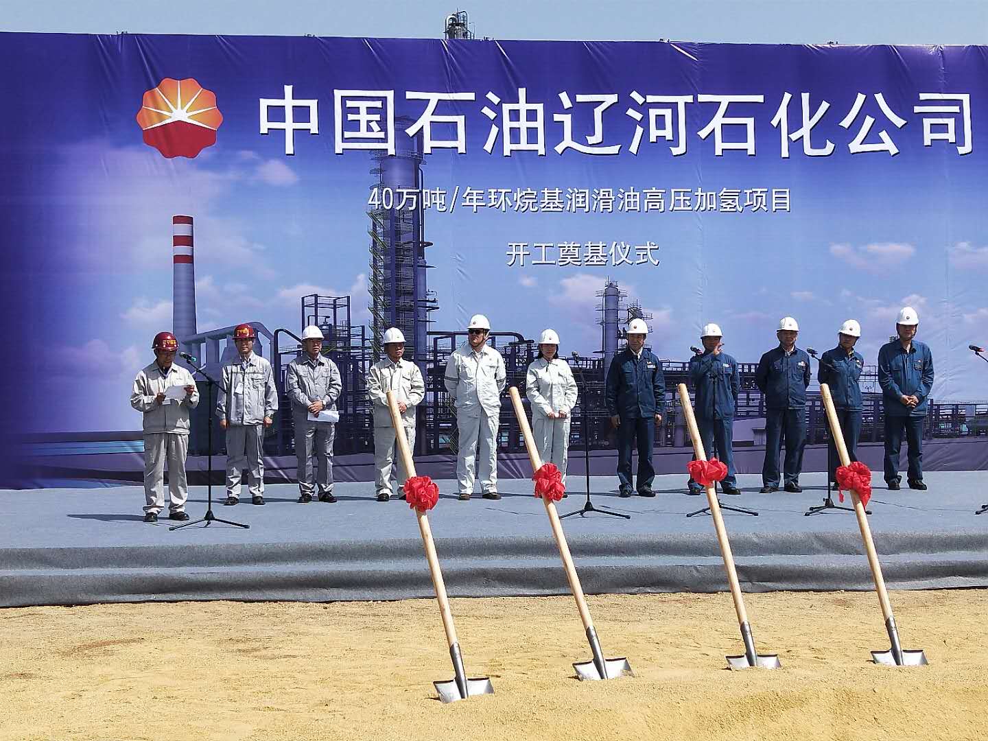 2018年5月8日上午9时58分,风和日丽,晴空万里。中国石油辽河石化公司40万吨/年环烷基润滑油高压加氢项目开工奠基仪式在辽河石化厂区项目现场隆重举行。我公司总经理田立奎、项目总监理工程师黄思敏以及项目监理部全体监理人员参加了会议。