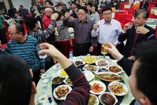 公司领导班子在晚餐会上