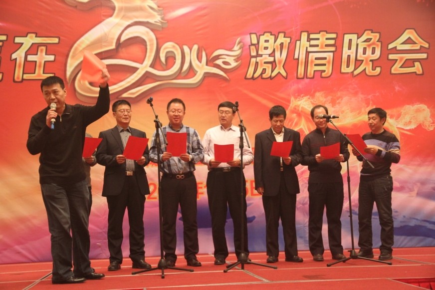 年终总结大会由副总经理祝奕主持。总经理孙学良和董事长赵剑平分别进行了发言。